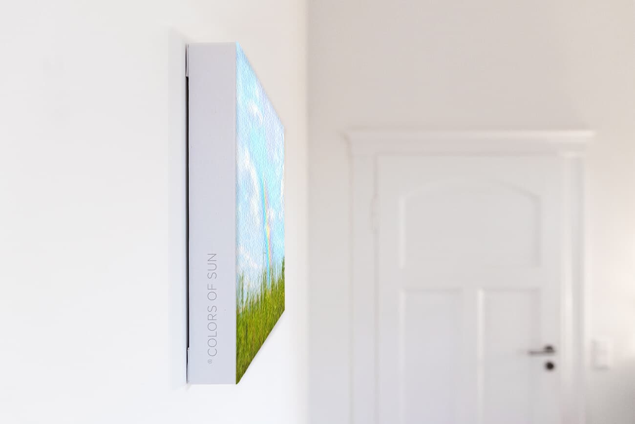 The powerful radiance of COLORS OF SUN canvas pictures with a wide border creates a special presence on the wall. The high-quality linen and silk-matt varnish emphasize the noble effect of the sun pictures. The consistently high production quality and craftsmanship characterize all our COLORS OF SUN products.