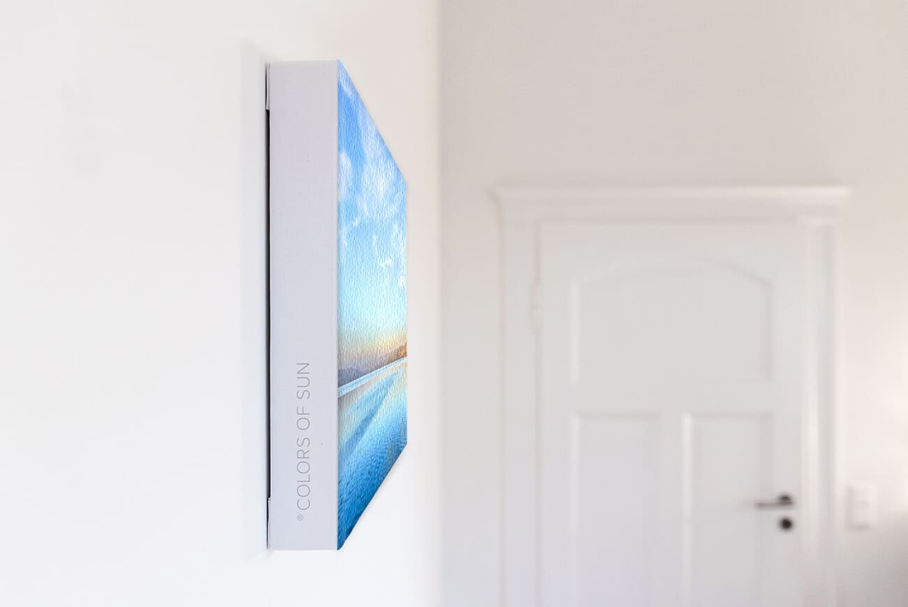 The powerful radiance of COLORS OF SUN canvas pictures with a wide border creates a special presence on the wall. The high-quality linen emphasizes the noble effect of the sun pictures. The consistently high production quality and craftsmanship characterize all our COLORS OF SUN products.