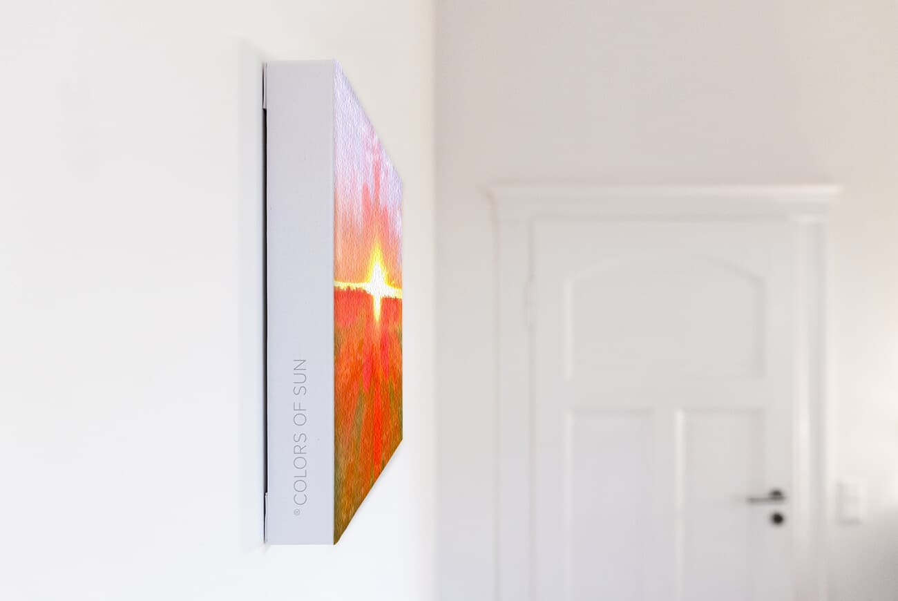 The powerful radiance of COLORS OF SUN canvas pictures with a wide border creates a special presence on the wall. The high-quality linen emphasizes the noble effect of the sun pictures. The consistently high production quality and craftsmanship characterize all our COLORS OF SUN products.