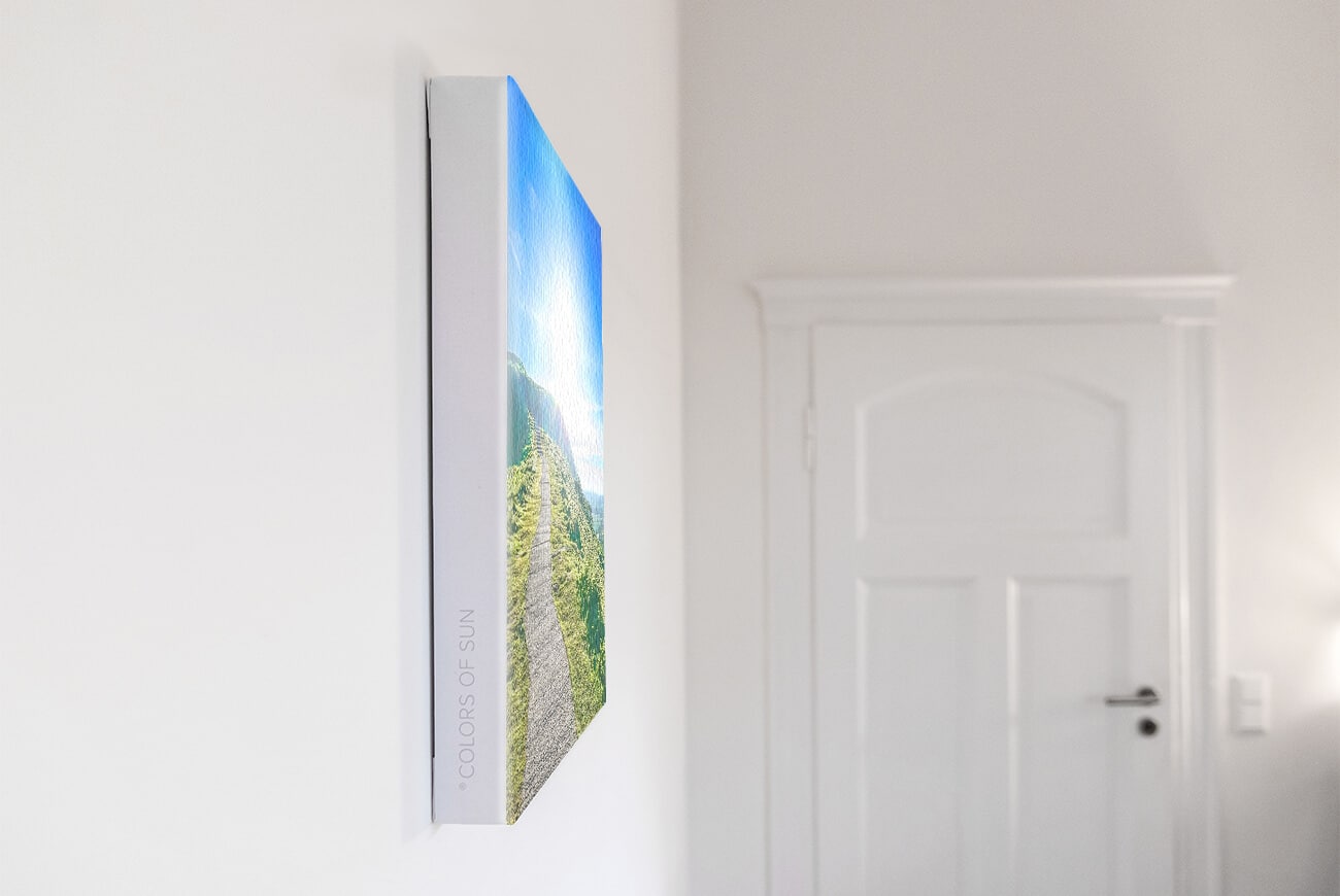 The powerful radiance of COLORS OF SUN canvas pictures with a wide border creates a special presence on the wall. The high-quality linen emphasizes the noble effect of the sun pictures. The consistently high production quality and craftsmanship characterize all our COLORS OF SUN products.
