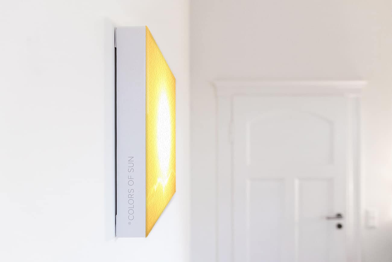 The powerful radiance of COLORS OF SUN canvas pictures with a wide border creates a special presence on the wall. The high-quality linen emphasizes the noble effect of the sun pictures. The consistently high production quality and craftsmanship characterize all our COLORS OF SUN products.