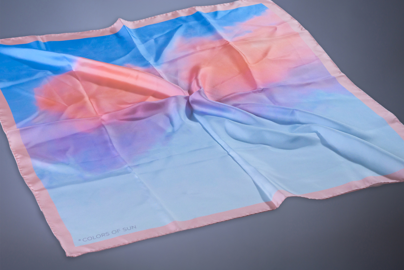 Our premium silk scarves are wearable artworks — each of the 7 designs is based on an original motif from the COLORS OF SUN art collection. Sunlight and vibrant color worlds are transformed into refined accessories that combine style with a positive aura. Brilliant colors that bring personality to any outfit, beautifully versatile to wear – elegant, lightweight, and filled with joy.